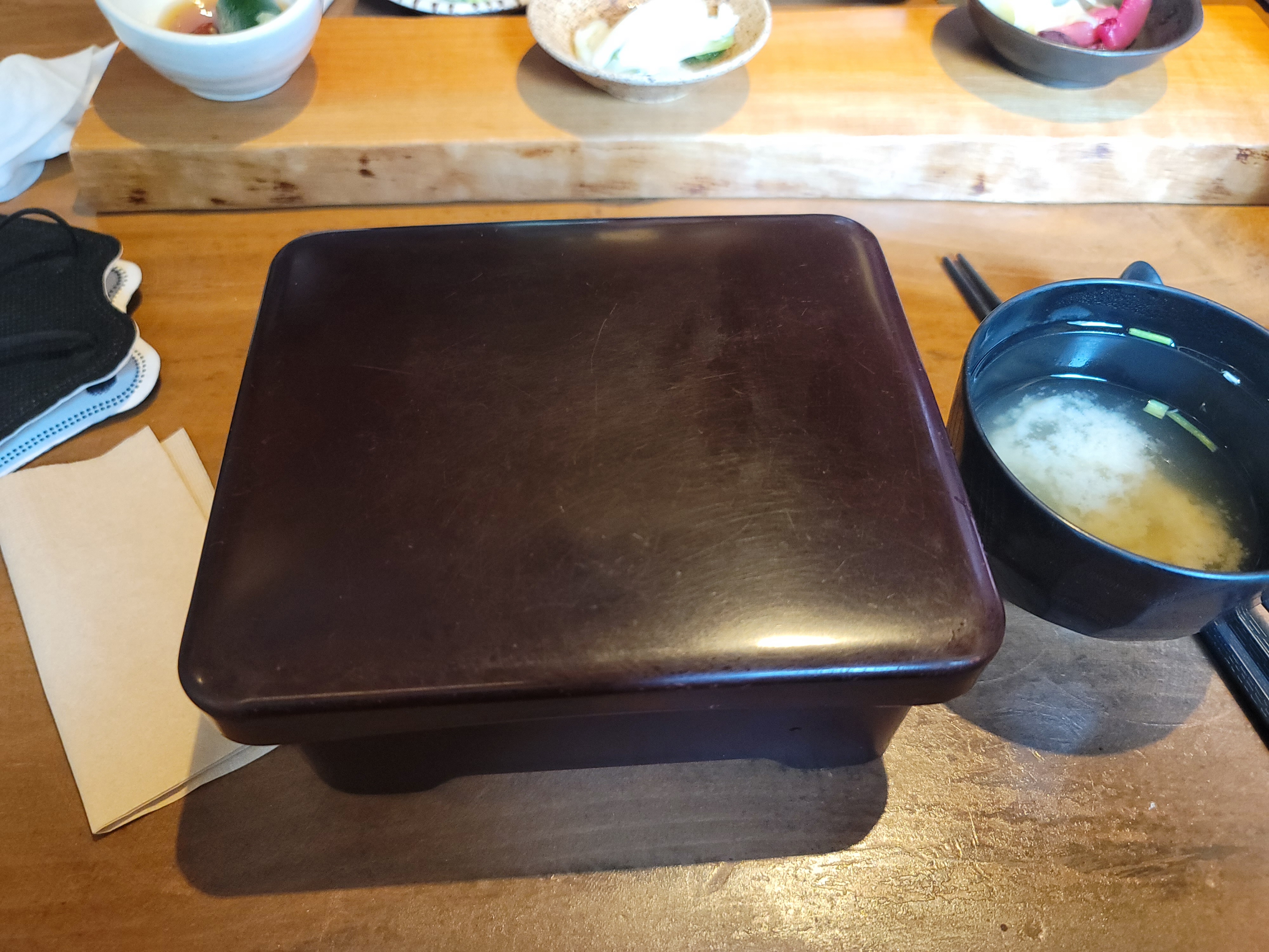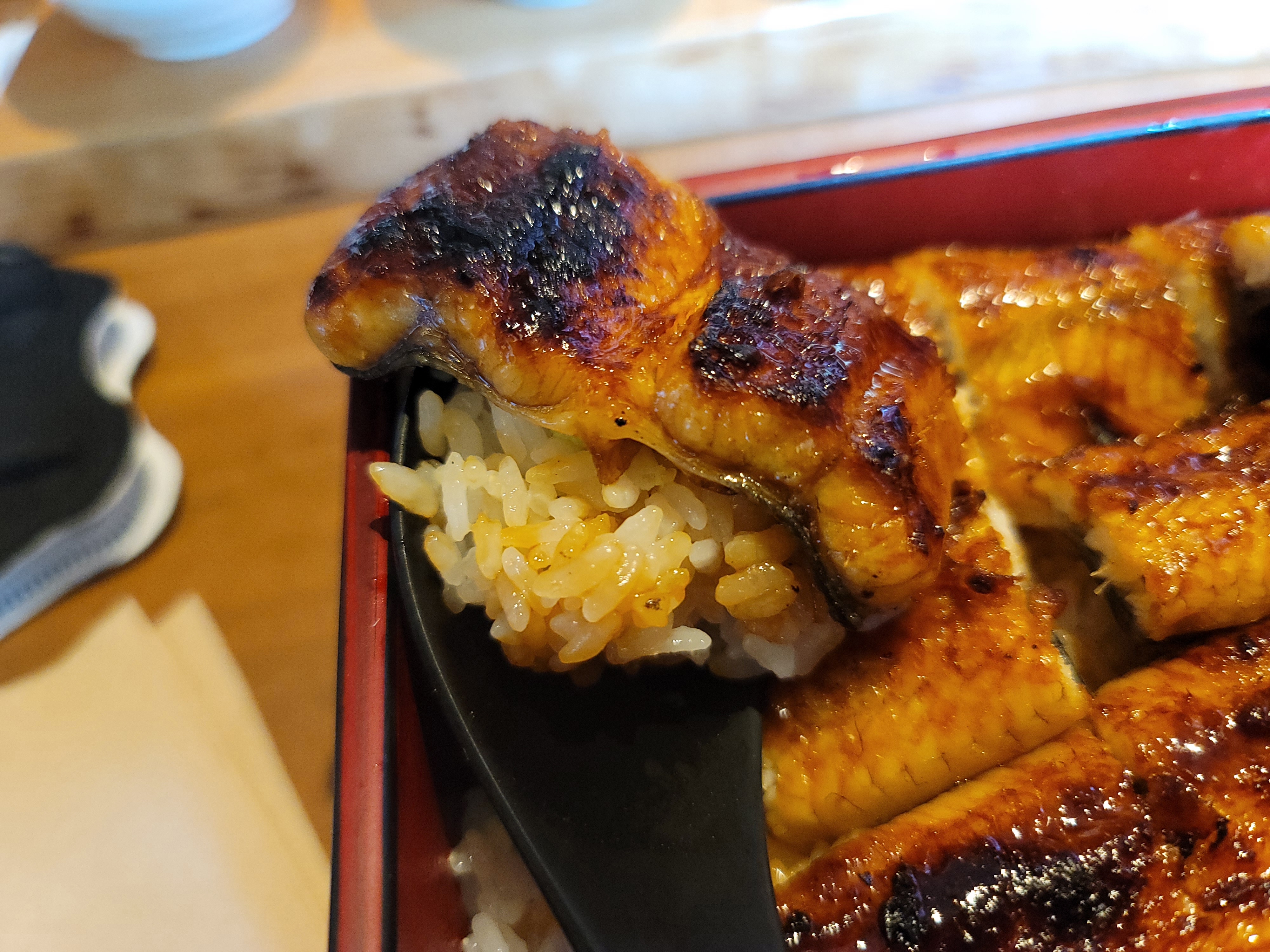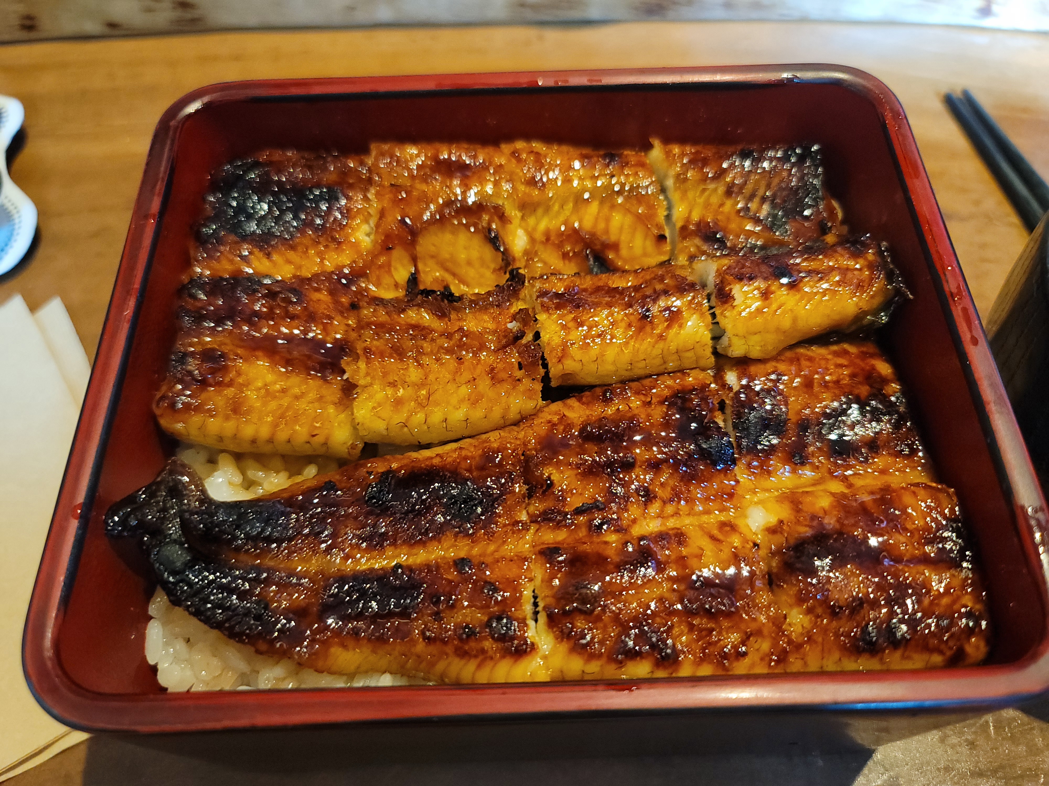 근데 은근 배가 참! 밥 한 숟가락에 와사비 한 젓갈 하면 코 찡 하면서 맛에 감동도 찡하게 느껴짐 ㅋ 내가 먹던 장어는 그냥 고순조가 된 느낌...ㅋ 난 분명 입에 넣었는데 왜 사라지는지,,,, 정말 아쉬웠음 내 도시락 바닥이 보인다는 게 ㅋ 그렇게 장어를 다 뿌시고 기다리니